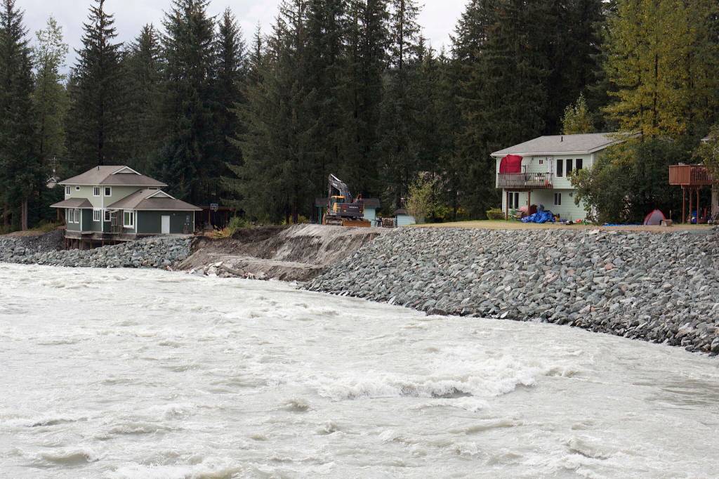 The release of water from the ice dam above the Mendenhall Glacier on Aug. 5 destroyed or damaged dozens of homes, with many of the latter still condemned as uninhabitable. Extensive repair efforts have been made to some residences, including placing many tons of rock fill along the bank of the severely eroded Mendenhall River to prevent further damage, but much of the cost is being borne by residents who said they were hoping for eventual reimbursement via federal and other disaster aid.