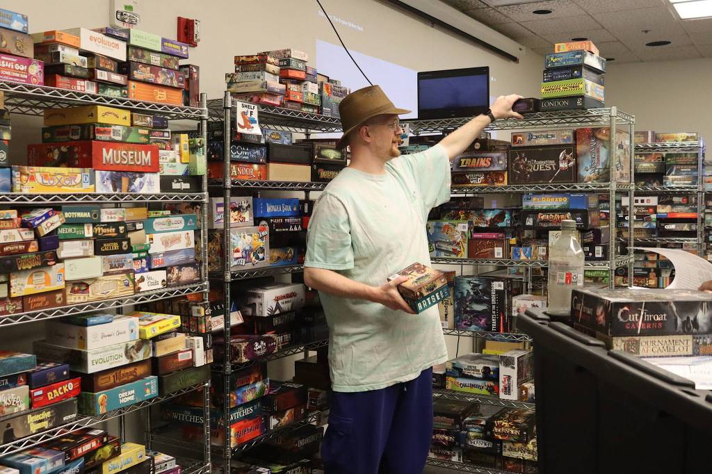 “We had to rent a box truck and move them ourselves,” Warren, president of Platypus Gaming, said Thursday while helping sort and put onto shelves the more than 2,300 board games that will be available during the three-day event starting Friday at Centennial Hall.