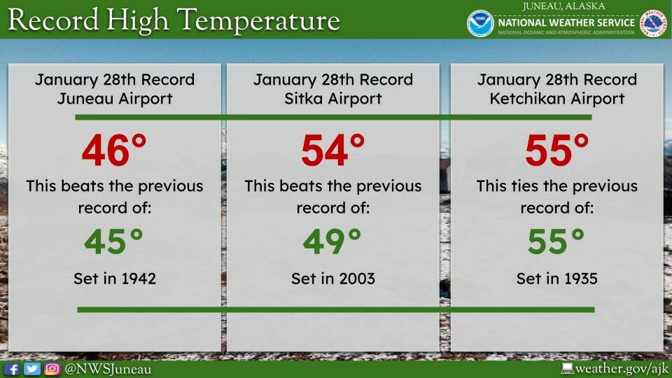 Juneau probably won’t be breaking the snowfall record for January despite those two massive storms within a 12-day period, due to a deluge of rain and record-high temperatures that have dissolved multiple feet of accumulated snow into mere traces in some areas, officials said Monday.