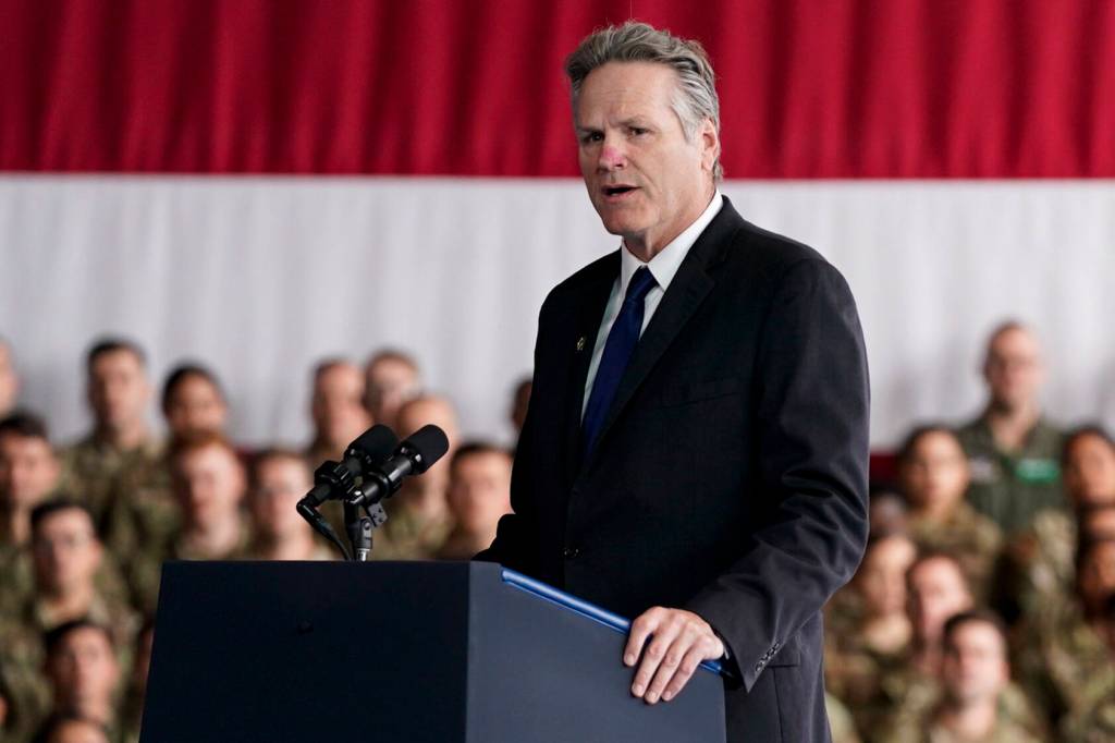 Gov. Mike Dunleavy speaks at Joint Base Elmendorf-Richardson to mark the anniversary of the Sept. 11 terrorist attacks, Sept. 11, 2023, in Anchorage. (AP Photo/Evan Vucci, File)