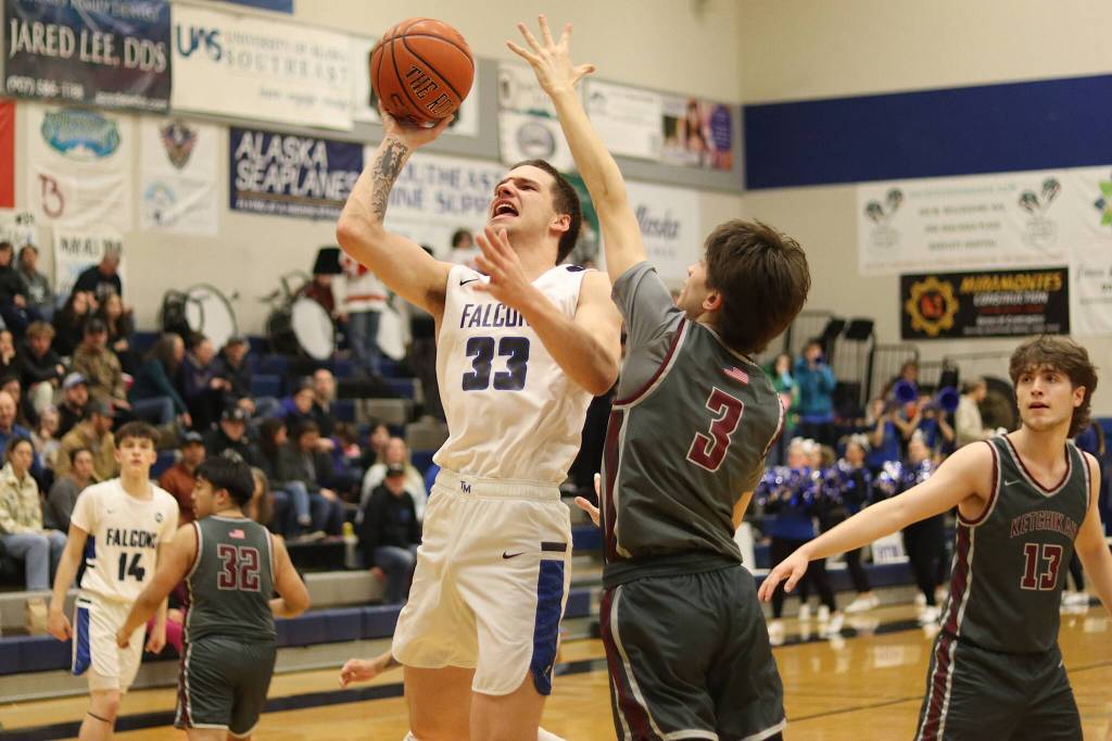 Thomas Baxter led the Falcons on Saturday with 21 points, while Samuel Lockhart scored 14 points. Ketchikan’s Marcus Stockhausen led all scorers with 22 points.