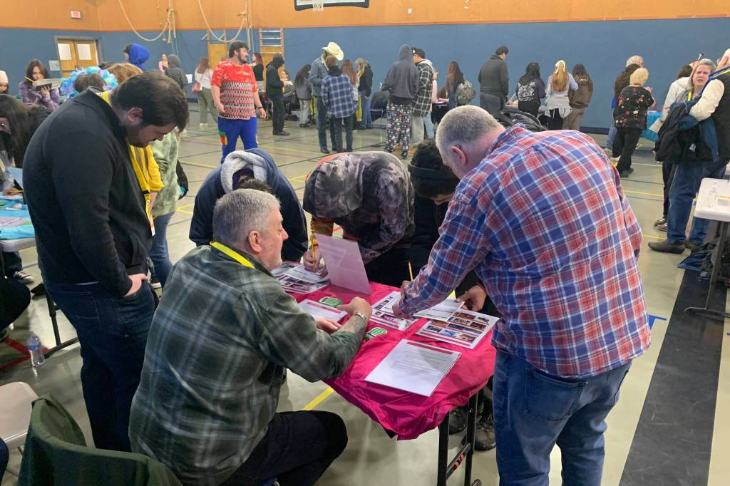 Students at Yaaḵoosgé Daakahídi High School participate in a Financial Reality Fair. (Photo courtesy of John Paul / Yaaḵoosgé Daakahídi High School)