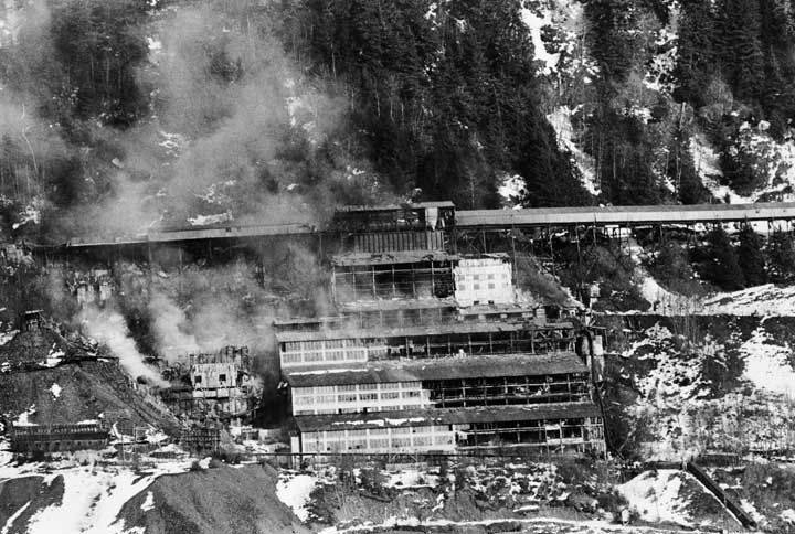 In the 1960s, the valuable milling equipment was removed and salvaged. The steep hillside mill buildings began their slow decline. On March 20, 1965, a catastrophic fire destroyed much of the structure. Today barely a visible remnant remains of the once terrain-dominating, stair-stepped, gravity-fed processing mill. The land has been reclaimed by Southeast Alaska’s rainforest vegetation.