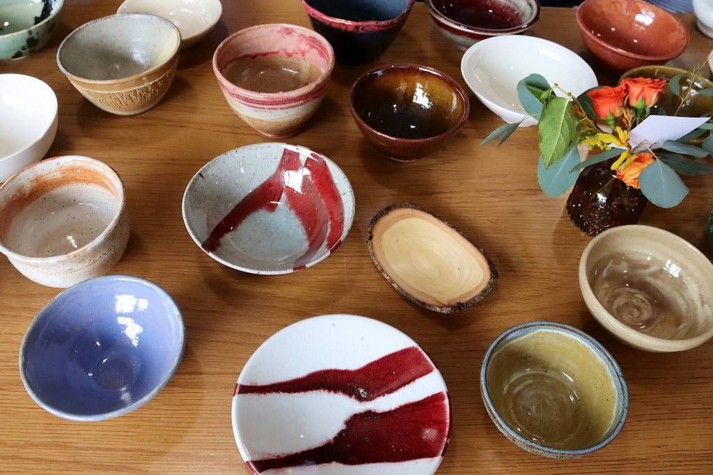Gotschall said he made about ten bowls for this year’s fundraiser, which he and other members of the Tongass Turners woodworking group have created bowls for over the years. The wooden bowls were greatly outnumbered this year by ceramic dishes among the hundreds on display on tables outside the main ballroom where soup was being served — and perhaps because they were fewer in number, most were claimed early during the three-hour event.
