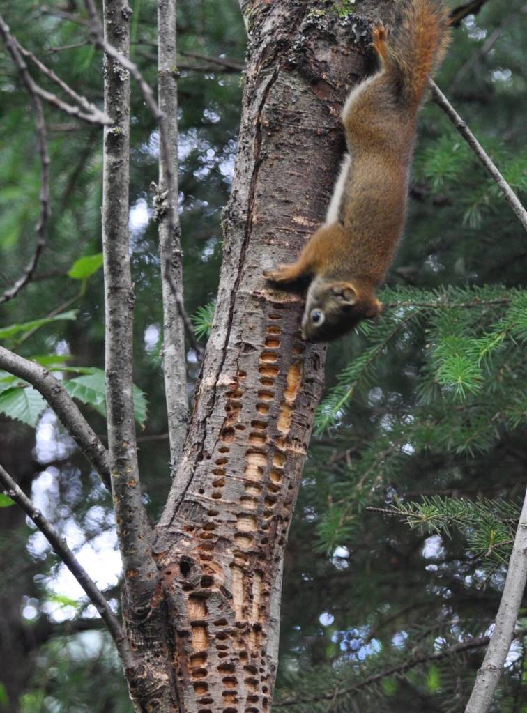 So, how to hummingbirds survive in chilly spring weather without flowers or feeders? They slurp the sap that pools in tiny wells on certain trees where Red-breasted Sapsuckers have drilled below the bark to create catchment basins. Squirrels and other animals lap up the sap, too.