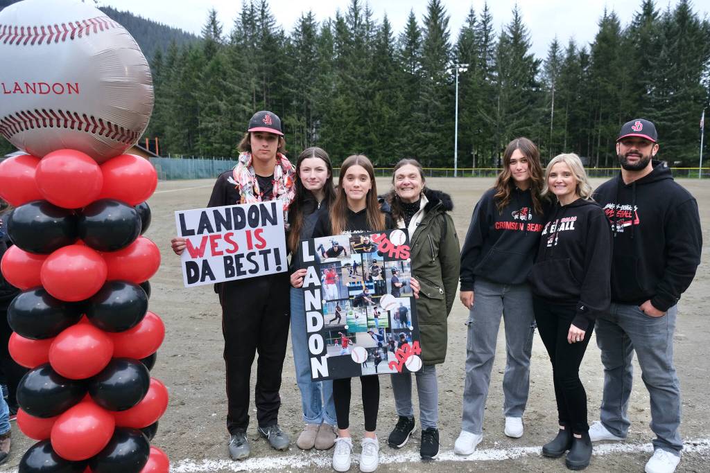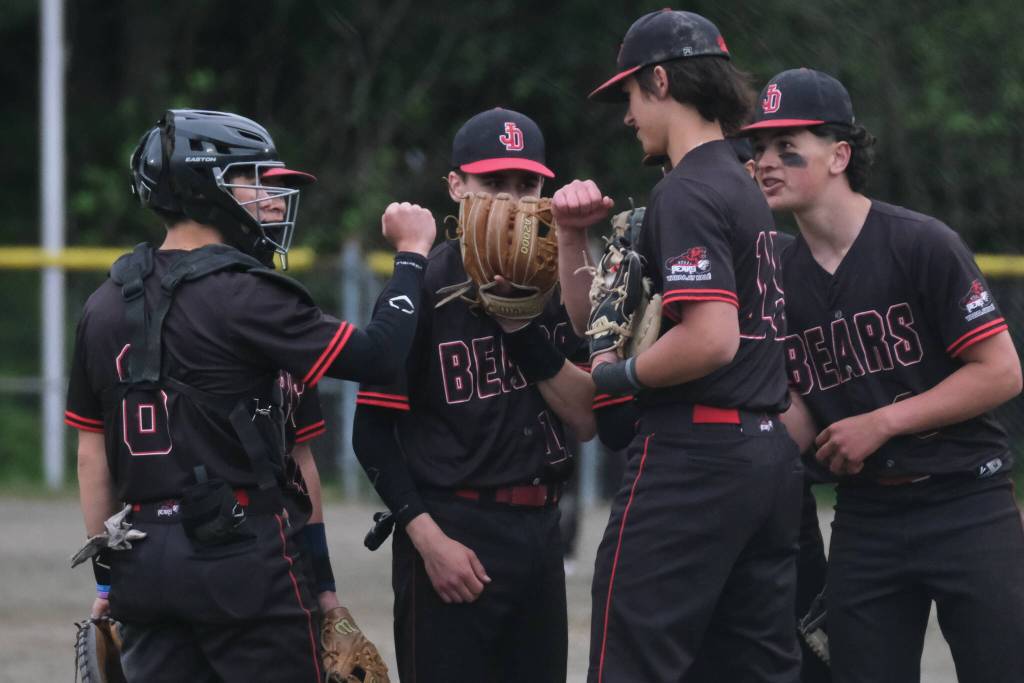 The Juneau-Douglas High School: Yadaa.at Kalé Crimson Bears baseball team honored their seniors with a Saturday sweep of crosstown rival Thunder Mountain at Adair-Kennedy Field, winning the first of the twin bill 3-0 and taking the nightcap 8-5.