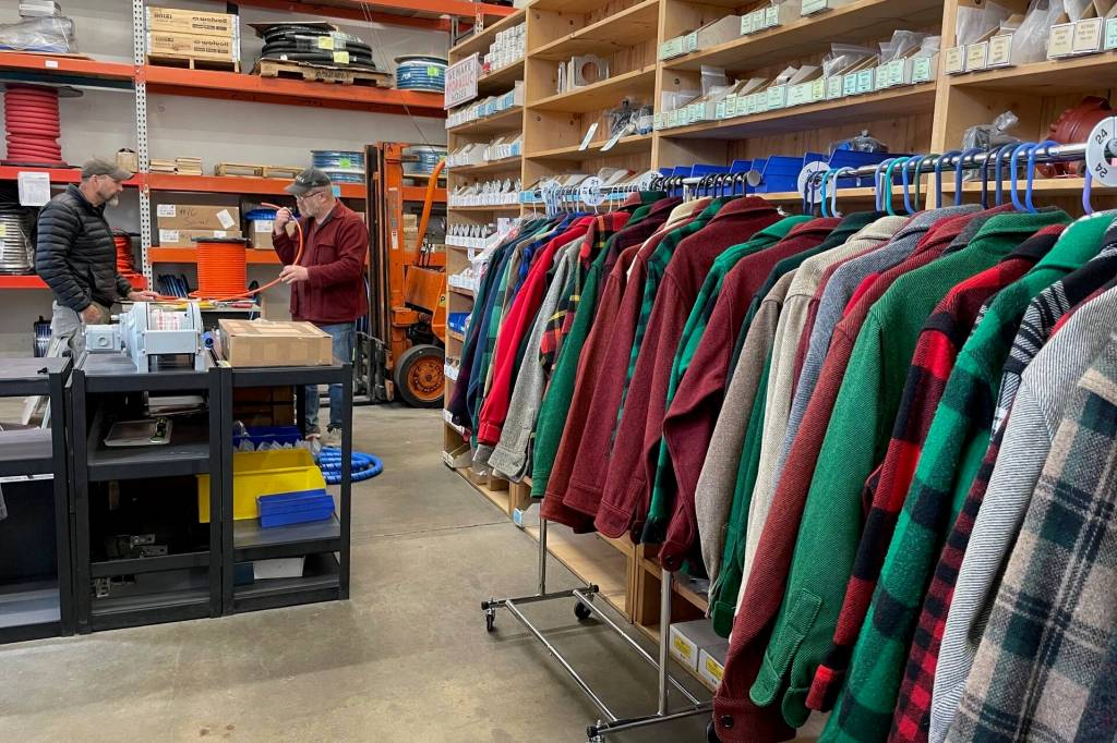 Marine parts manufacturer Jim Gerahgty stumbled onto his new line of old merchandise about a year ago when his uncle Norm Israelson misplaced his prized, decades-old halibut jacket. He really wanted one, Jim said. So Jim went searching online and found a classic Woolrich replacement. He ordered it. The package was lost in the mail, so he found two more online and bought them. Then both the original order and the backup package arrived simultaneously. One jacket went to his uncle and the others hung casually in Jim’s shop.