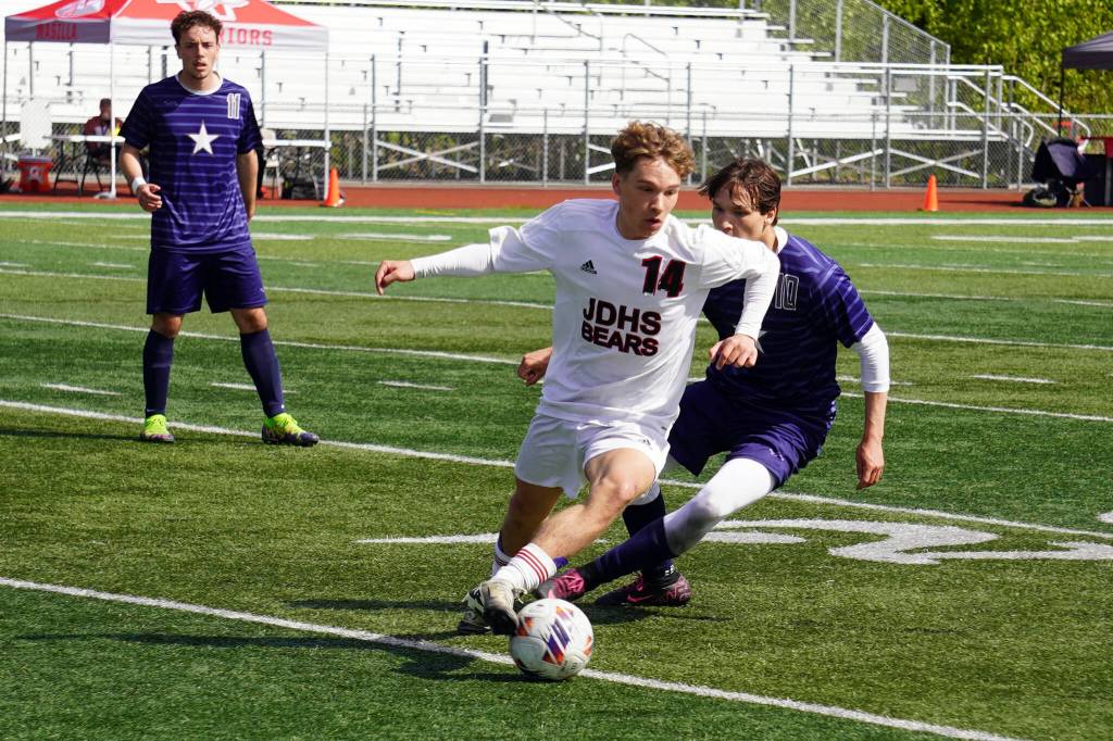 The second-seeded Crimson Bears boys (9-3-2 overall) fell behind top-seed Soldotna High School (18-0-1) on a goal within the first two minutes and trailed 3-0 until Juneau’s Ryan Thibodeau scored moments before halftime. But they were unable to narrow the gap further as Soldotna scored an additional goal during the second half to claim the title JDHS won the past two years.