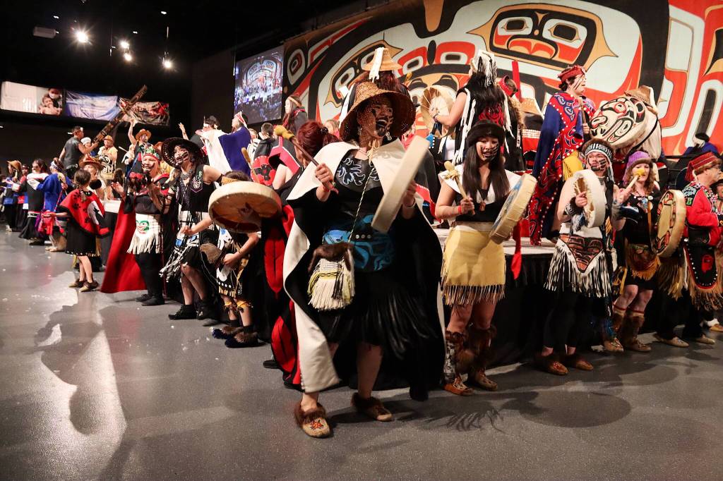 “The voices of our ancestors are being heard as we are here today,” said Rosita Worl, president of Sealaska Heritage Institute, in a speech that roused the crowd just before the final group of dancers exited the stage during the ceremony. “And the voices of our ancestors we know will be heard in generations and thousands of years to come. They were carrying the voices of our children — did you not hear the voices of our ancestors in their songs?”