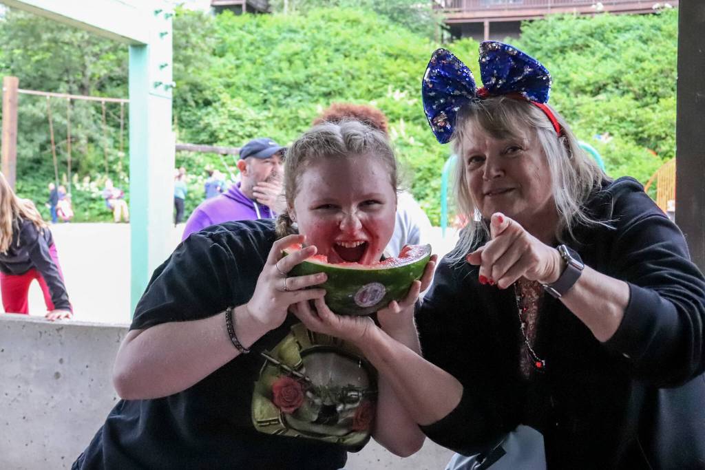 The Douglas Volunteer Fire District grilled burgers and hot dogs at Savikko Park as children competed in the annual watermelon-eating contest.