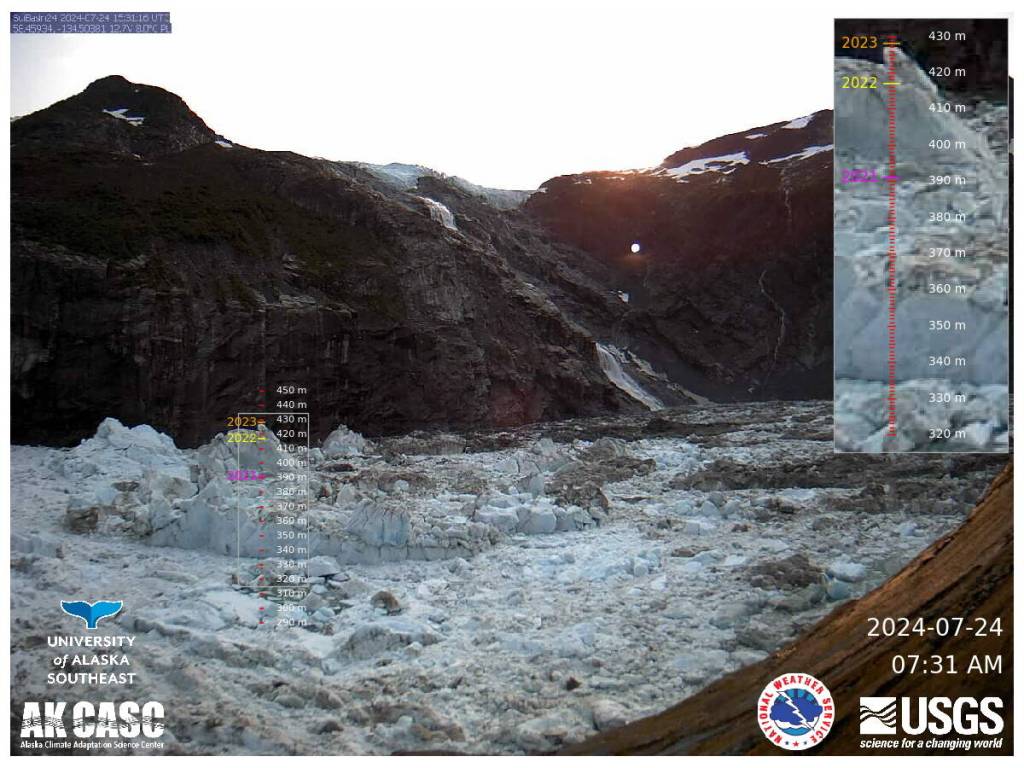 Warnings have also been issued about water buildup in Suicide Basin, where a record release of water last Aug. 5 resulted in record flooding of the Mendenhall River that caused damage to numerous homes. Morgan said Wednesday so far officials are continuing their normal monitoring of the basin without any heightened indicators of an imminent release — although emergency officials for the city have emphasized such a release is possible at any time.