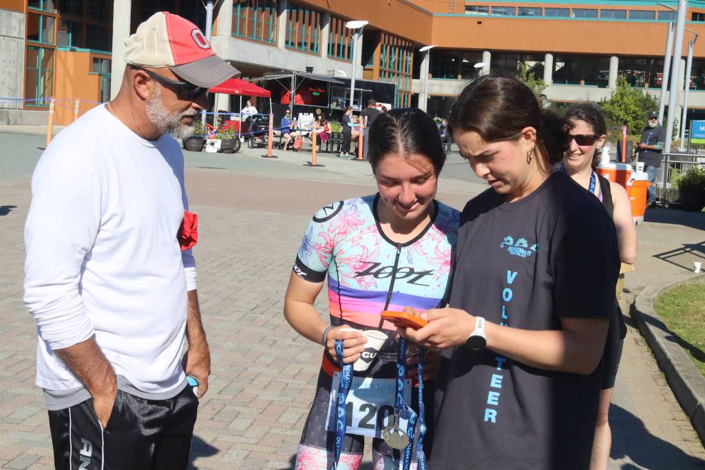 Lang, a member of the triathlon team at Liberty University who is working at a bike shop in Juneau this summer, completed a 1.5-kilometer swim in 23 minutes and 27 seconds, 40-kilometer bike ride in 1:22:44, and 10.2-kilometer run in 45:45, for a total time of 2:36:49. She defeated the top male finisher — Scott Gresham of Calgary, Canada — by eight minutes and 14 seconds.