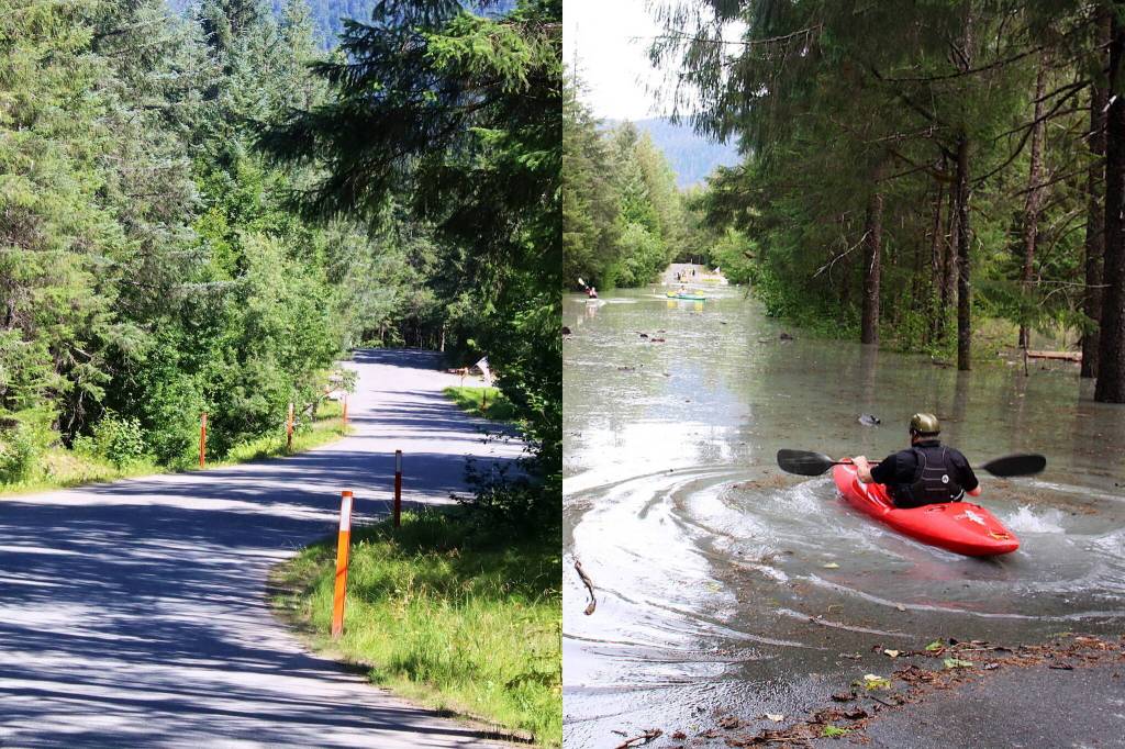 On View Drive, where numerous residents were cut off from Juneau’s roads by flooding which submerged an access road, Kim Peterson said she’s made several upgrades to safeguard her home, including inflatable protective liners outside her garage doors to avoid a repeated of last year when the garage was submerged in several inches of water.