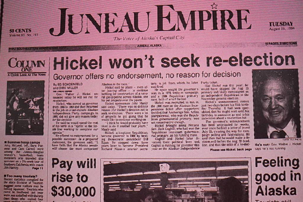 Empire Archives is a series printed every Saturday featuring a short compilation of headline stories in the Juneau Empire from archived editions in 1984, 1994 and 2004.