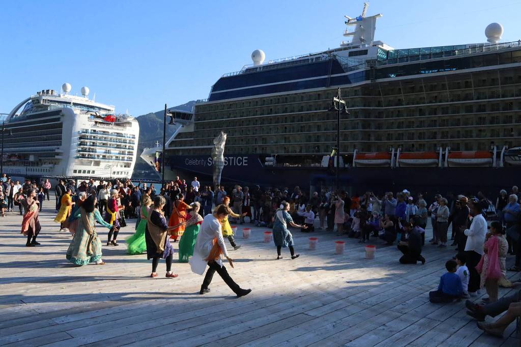 About a dozen “Bollywood flash mob” dancers performed and revelers threw bucketloads of rose petals in the air during a celebration of India’s Independence Day at Elizabeth Peratrovich Plaza in part to present a donation to the Juneau Community Foundation. The foundation has revived a Mendenhall River Flood Relief Fund started after a similar disaster last year, which as of Thursday evening had raised at least $150,000, according to John Pugh, the foundation’s president.