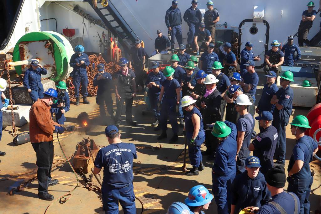 “We’re maritime professionals,” Sargent said. “When we go in the water and someone says, ‘There’s a person in the water,’ and we find those people in the water, we gotta get the line to them, so we train on that. And it’s a simple thing. It’s a line with a ball on it, and it sounds like a simple thing, just toss it in a straight line. But you have wind, you have the environment, you have the pressure of just everyone on the boat watching you throw that line.”