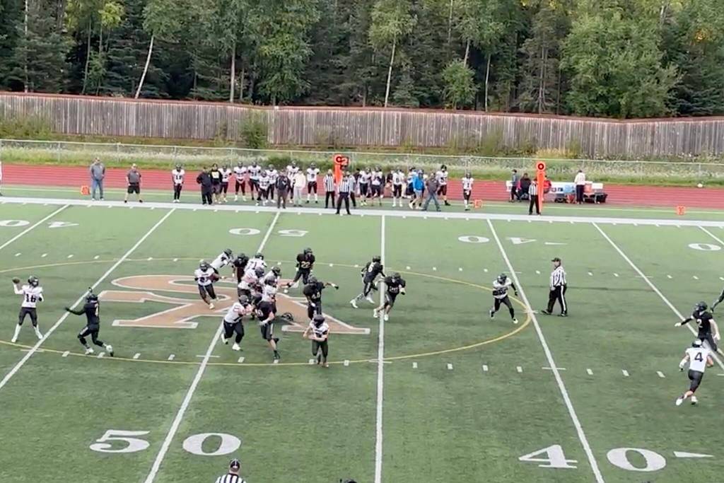 A nine-yard run gave Juneau a second-and-1 situation, but Ziegenfuss overthrew a wide-open Jayden Johnson on a long pass that would have been an easy score. A few plays later Ziegenfuss hit a rollout pass to Johnathyn Kestel to convert a third-and-5 near midfield. But on the next play a direct snap to a running back was fumbled and recovered by South Anchorage at its own 47-yard line.