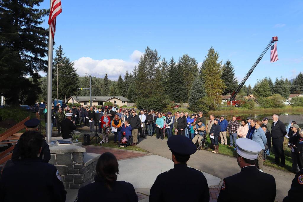 “It’s a day of remembrance and it’s those first responders, and those who are just people showing up to save lives, and that’s what this crew does every day,” Chalyee Éesh Richard Peterson, president of the Central Council of the Tlingit and Haida Indian Tribes of Alaska, told those attending the event. “And to all of our first responders, to those who fill up, you will forever be in my debt and you always have my gratitude for what you do for our communities, for the safety and the security that you provide.”