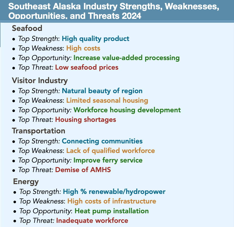 • There were 300 more jobs in Southeast in both the tourism and construction industries in July of 2024 compared to July of 2023, while there are 300 fewer seafood industry jobs. Besides record cruise ship traffic this year and last boosting the tourism industry, the construction industry thrived due to $334 million in federal infrastructure bill investments in Southeast in 2023.