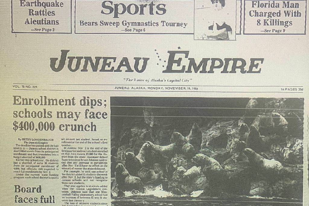 This week in 1984, the deadline has passed and the bad news is in — the Juneau School District is short 100 students from its anticipated enrollment and that translates into a budget shortfall of $400,000. Earlier this year the district had a shortfall of some 50 students from its anticipated enrollment of 4,600, but officials still expected to reach full enrollment by Nov. 2. Under the current state funding formula, each school district is paid a set amount per student, based on enrollment at the end of the school’s first quarter. In Juneau, Nov. 2 is the end of the first quarter and each student enrolled on that date means $3,800 for the district from the state. The loss of more than 50 students since late September is common because of dropouts and families moving from Juneau, a district spokesperson said.