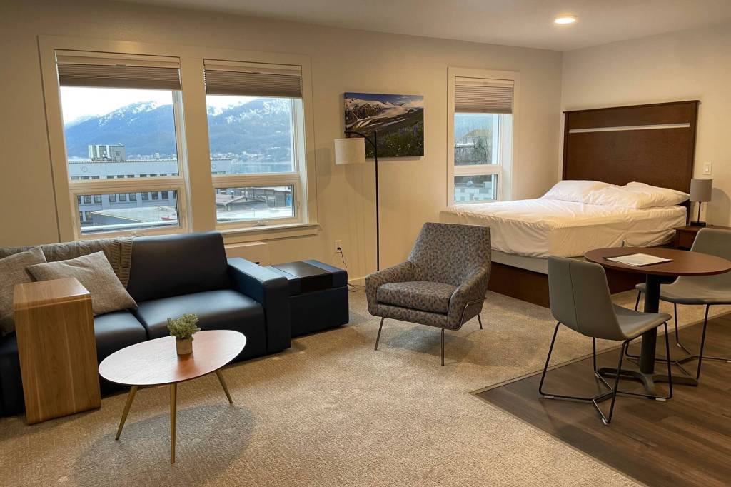 Down the hall, tenants will find washers and dryers and cordless vacuum cleaners to keep their home-away-from-home tidy. Spectacular views of downtown Juneau and Douglas with Gastineau Channel in the distance can be enjoyed from many of the large windows. Other vistas face the mountains. Large photographs of various Alaska locations mounted in each unit should make residents feel at home.