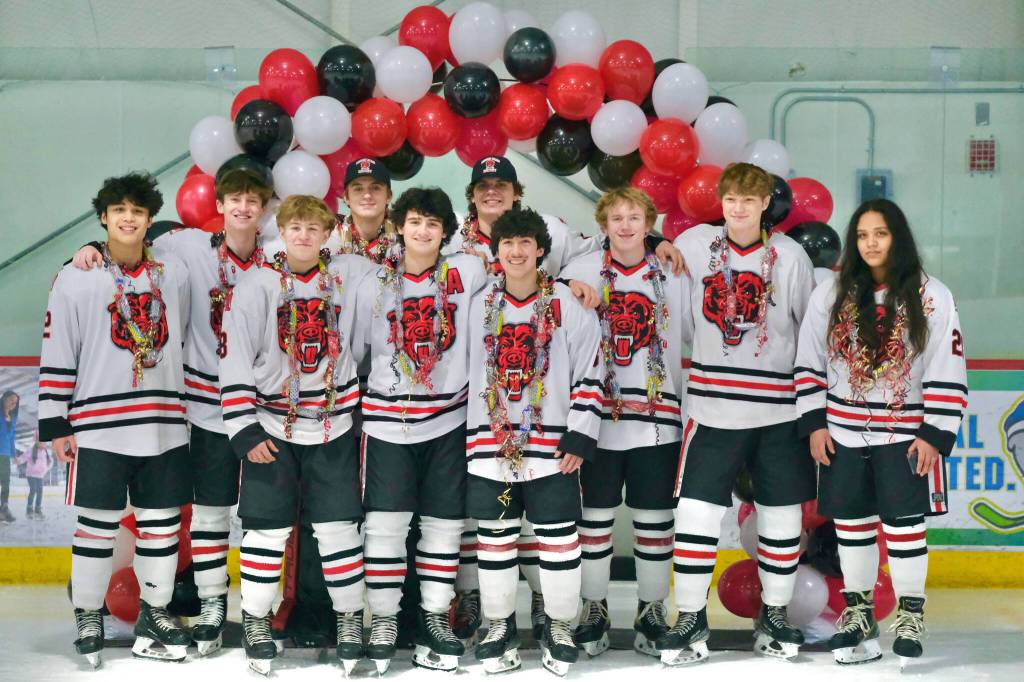 The Juneau-Douglas High School: Yadaa.at Kalé Crimson Bears celebrated their seniors Friday night at the Treadwell Ice Arena, but the visiting Kenai Kardinals took a 5-4 win.