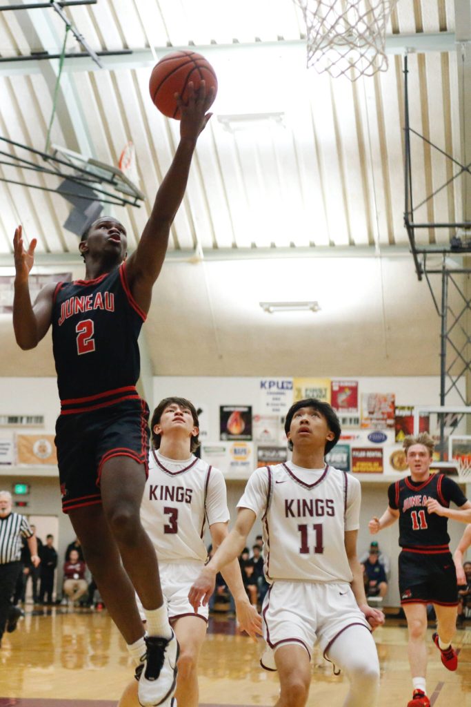 The Juneau-Douglas High School: Yadaa.at Kalé Crimson Bears played a solid first half in their opening game against Ketchikan at the Region V 2A/4A tournament at the Kings’ Clarke Cochran Gymnasium.