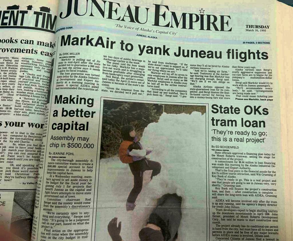 This week in 1995, state officials approved a financing plan today for the Mount Roberts tramway, setting the stage for construction of the project. A commitment for $8.64 million in loan financing was made this morning by the Alaska Industrial Development and Export Authority. That’s the final piece in the financial puzzle for the $14.75 million tourist attraction, said Win Gruening of Key Bank of Alaska. “They’re ready to go. This is a real project and one that people are going to see in Juneau very, very shortly,” Gruening said. Key Bank will finance the project’s construction loan, and then — after construction is complete —will share the long-term loan with AIDEA, Gruening said. AIDEA will become involved only after the tram is up and running, said the agency’s deputy director for credit John Delano. Tram developers expect to begin shuttling tourists up the downtown mountainside in April 1996. John Heiser, president of Mount Roberts Development Corp., has said he wants to start construction next month.
