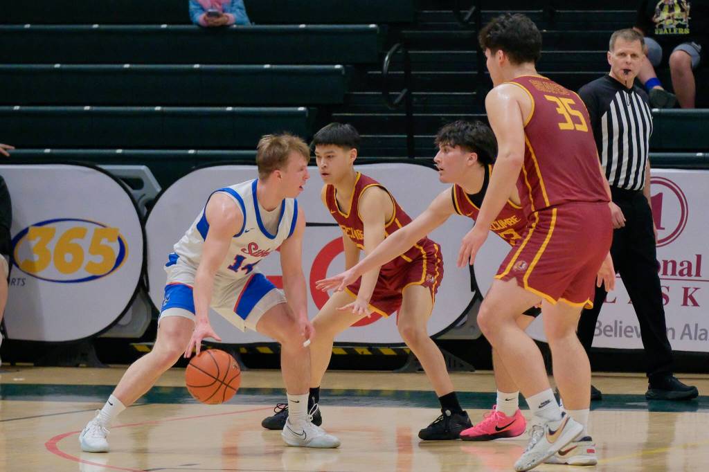 With three minutes left to play in the fourth quarter Sitka led 56-54. But Mt. Edgecumbe senior Brent Sun came off the bench and around a screen and hit a shot past the arc for a 57-56 lead.