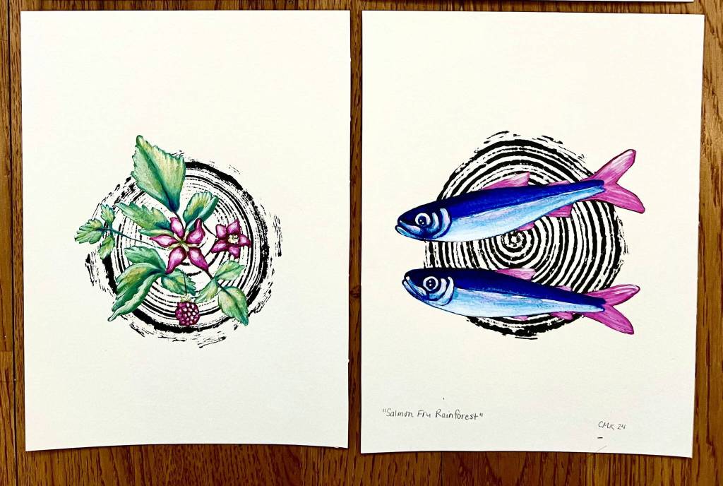 Grace Kelley is a printmaker and naturalist raised in the rust belt of Ohio who’s been living in Juneau since 2016. The Sundew Print Show is a collection of new block prints about the charming corners of spring and summer in Southeast. All work is printed by hand with archival ink on mulberry paper at the Heads in the Clouds studio downtown.