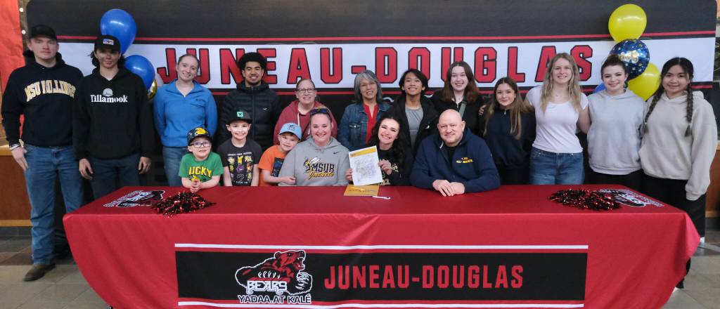 A new fight song, new moves, new environment and a new athletic level to achieve await Juneau-Douglas High School: Yadaa.at Kalé four-year Crimson Bears cheerleader Ayla Keller after she signed a national letter of intent on Friday to attend Montana State University Billings and be a part of the Yellowjackets cheer/stunt team.