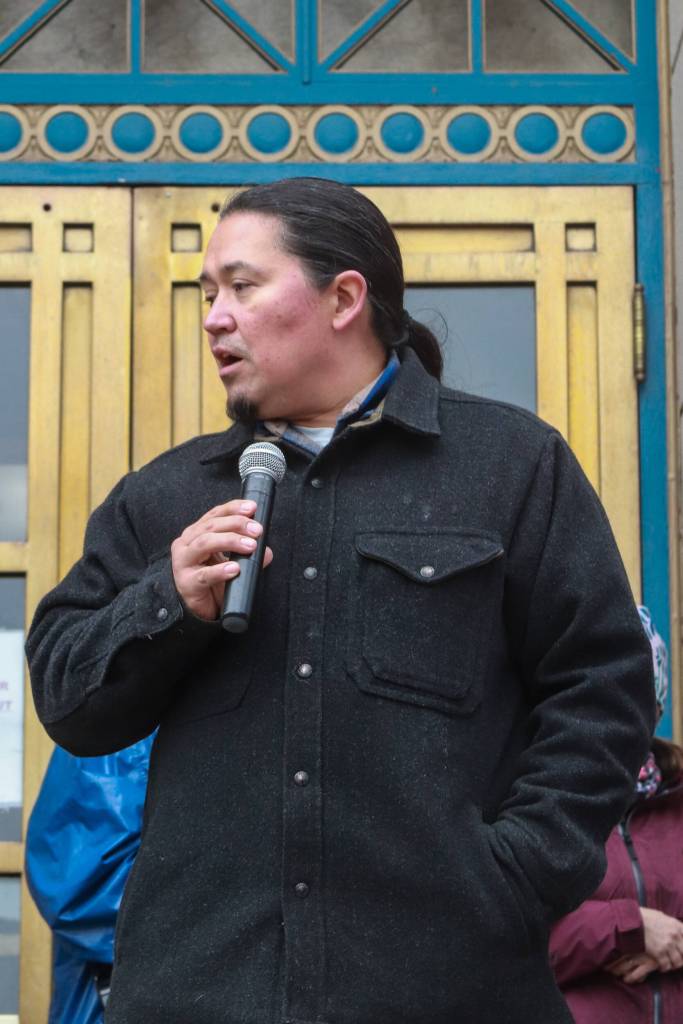 “I love that word, gunalchéesh, because when we say gunalchéesh, we mean without you, this is not possible,” he said. “Without you, our future will not look bright for our children and our grandchildren. We raise our voices for them so that they know that we didn’t stand on the side of the street saying, ‘Oh, we witnessed it.’ But we’re here to say we stood up for the rights for your future.”
