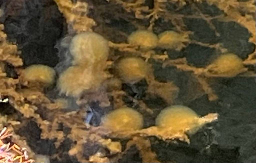 Sometime in April, a friend alerted me to some odd ball-shaped structures attached to a spruce log in Auke Lake. These are bryozoans, a type of minuscule aquatic animals. They constitute their own phylum, quite distinct from all other animals. There are over 5,000 species of bryozoans, exhibiting a great diversity of form and habit. Most of them live in saltwater, especially in the tropics, but some live in freshwater. Almost all of them are strictly colonial, although the size and shape of the colony varies. Those that we observed in Auke Lake make gelatinous balls, with the tiny animals projecting from the surface of the ball.