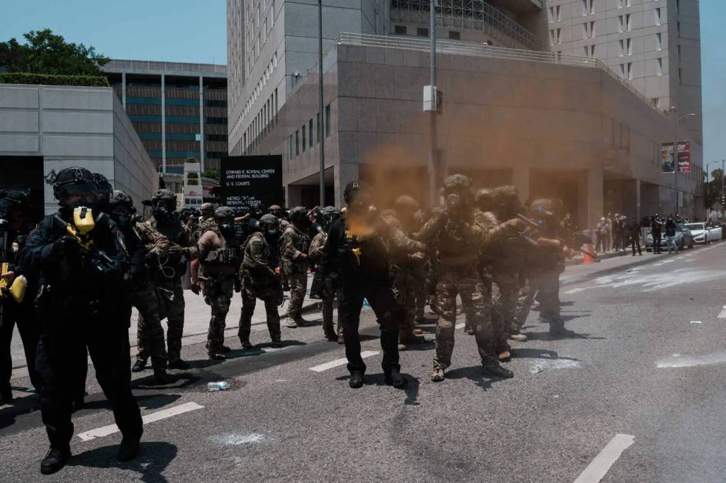 Video from the scene showed Department of Homeland Security officers and at least three from Immigration and Customs Enforcement also firing other crowd-control munitions outside a detention center in downtown Los Angeles where members of the California National Guard had also been deployed. The smoking canisters forced some of the hundreds of protesters to flee, while others helped fellow demonstrators wash their eyes. It was not immediately clear what prompted the escalation.
