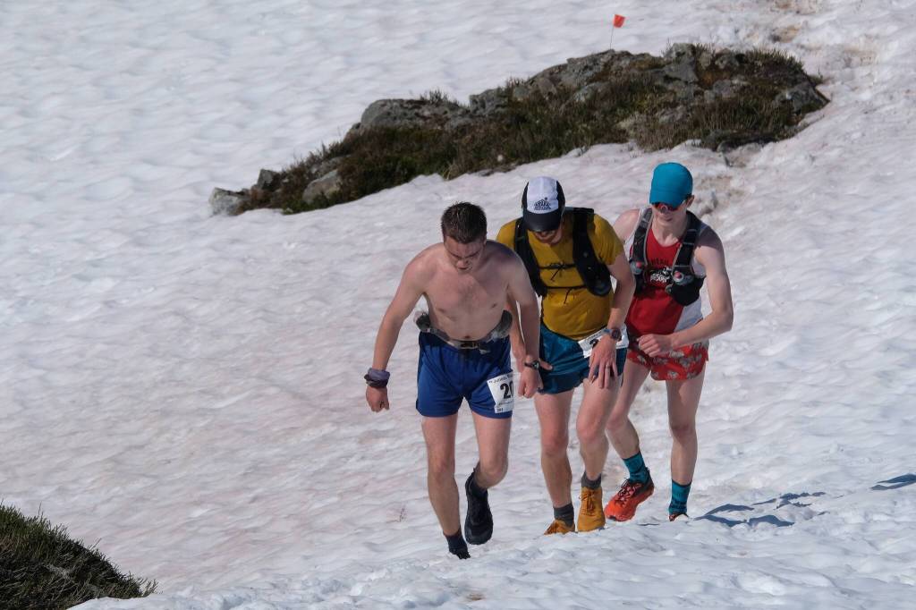 “At the very start of the race, I definitely go slower than most of the other top runners,” Taylor-Roth said. “I was maybe sixth going into the climb last year because the flatter running on Basin Road is just not my forte and I just always feel like stressed out at the beginning of the races so I’m going to go really chill. And then last year I tried to keep the tempo up the switchbacks, get at the top without putting myself in a hole and then be able to push hard on the ridge. I’ll push a little bit harder on the uphill this time around because I think I can put more time on people. I was second at the top of the climb, Josh (Taylor, 25, of Wasilla) was the only person who beat me up last year, but I think it could have dropped Derk on the climb if I had just pushed harder. But it’s like a balance because you can definitely go too fast and then you’re just trying to play catch-up and trying to desperately fuel and hydrate and that’s just really difficult when you’re already dead…. There is a snow shortcut that’s banned this year and most of the top runners are really comfortable coming down the snow gully, which is not banned. The Granite Creek Trail section is definitely a spot where people can separate as well… It’s a much different type of racing than most other stuff that I’ve done. I prefer it over, like, NCAA cross-country. I think it suits my strengths more and there are so many different aspects to it. It’s not just go out and run hard. It’s go out, run hard and eat enough and drink enough, and figure out when to push and how to keep yourself going for two and a quarter hours.”