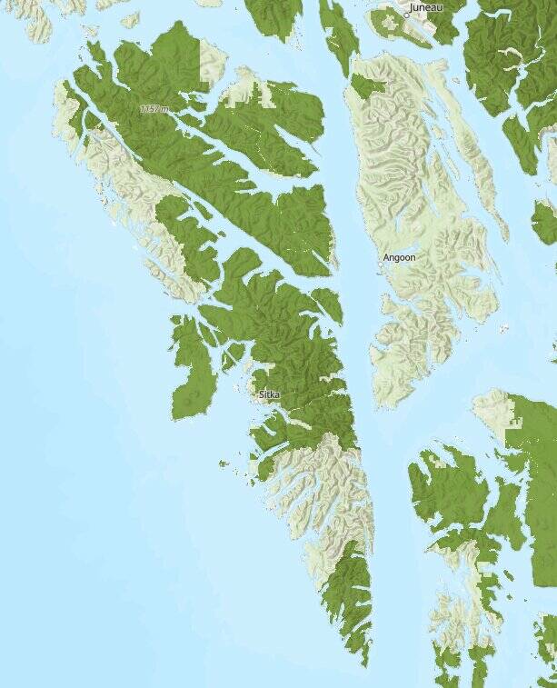 The Wilderness Society data appears to misrepresent land ownership in some small areas near Sitka. For instance, state-owned lands on Krestof Island, as well as Haida Corp. lands in the Siginaka Islands, are shown on the society’s map as “USFS lands eligible for sale.”