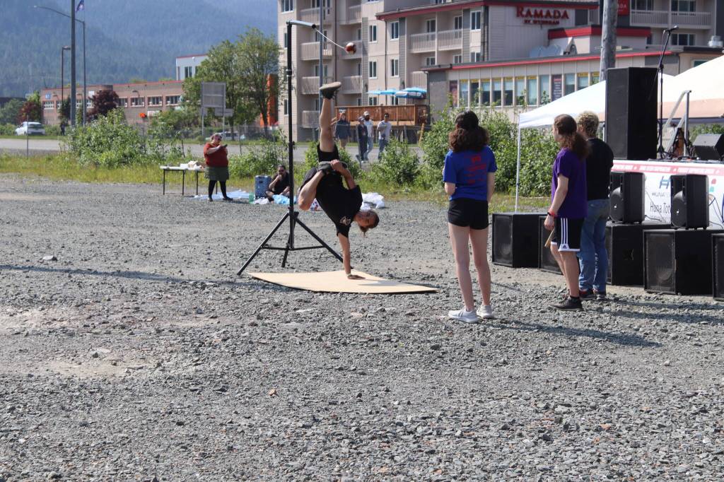 Nine bands, the Eagle Raven Dance Group, Native Youth Olympics, and a DJ drew about 100 people to the first Alaska Native Sisterhood Camp 70 Summer Solstice Music Festival at Áak’w Landing Saturday.