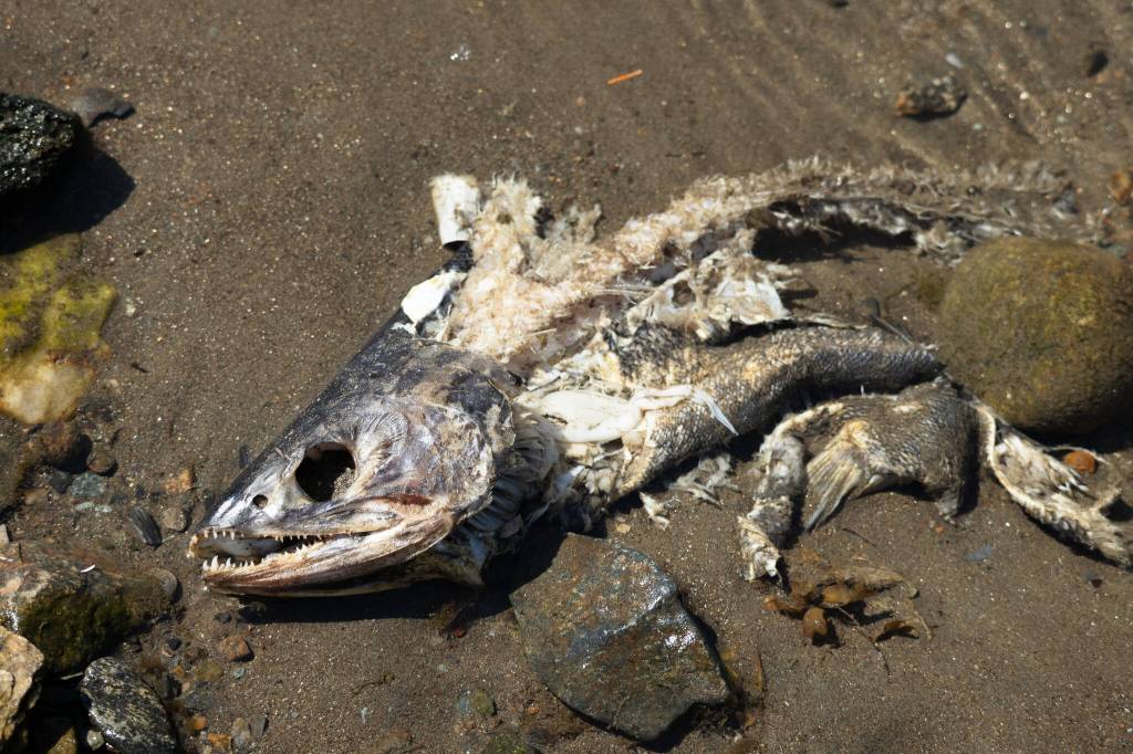 Salmon Creek in Juneau recently became a war zone for chum salmon. Hundreds of fish are turning the normally slow-moving stream into a splashy spectacle, heeding the biological call to further their species before their time is up. Live salmon launch themselves over the stinking corpses of those who have completed their duty. The silvery white scales of spawned-out fish pale in comparison to the purplish-green bodies of ones who have just returned from sea. But regardless of when it happens, every fish in fresh water is destined for the same fate: death.