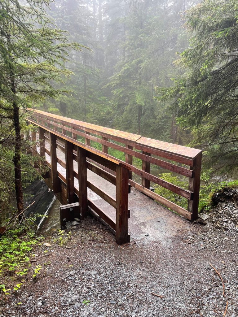 The reconnection of the 13.3-mile trail was made possible by the combined efforts of six partner organizations: the Alaska Department of Fish and Game; Juneau Community Foundation; U.S. Forest Service; City and Borough of Juneau; U.S. Fish & Wildlife Service Wildlife Restoration Program; and Trail Mix, Inc. According to a July 30 press release, these groups worked alongside the Volunteer Trail Maintenance Team, founded by “passionate local retirees and hundreds of community volunteers to bring the trail back to life.”