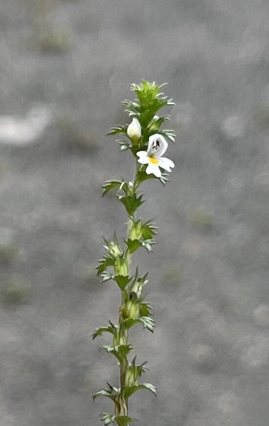 Down near the ground, perky little eyebright still bloomed. Now the flowering stems were “tall” (for an eyebright), standing up 6 or 7 inches with newer flowers at the top. I spotted a few tiny buds at the tip of the stem, indications of few more flowers that may come. There may be more than one species here, but I have not tried to sort that out. In general, eyebrights are pollinated by bees and other insects, but some of them can self-pollinate. Down in the meadow, scattered flowers of beach peas peeped through the taller vegetation. The purple flowers are pollinated by bees, which must do a little prying-open to reach the nectar and pick up or deposit pollen.