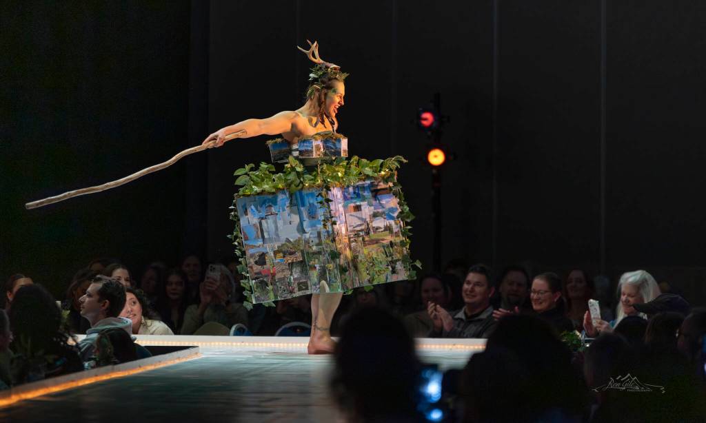 The Juneau Arts & Humanities Council’s 24th annual Wearable Art Extravaganza hit the runway last weekend, drawing in nearly 1,000 audience members. This year’s theme, “CAMP!” featured 16 wearable art pieces made entirely from upcycled household materials and craft items.