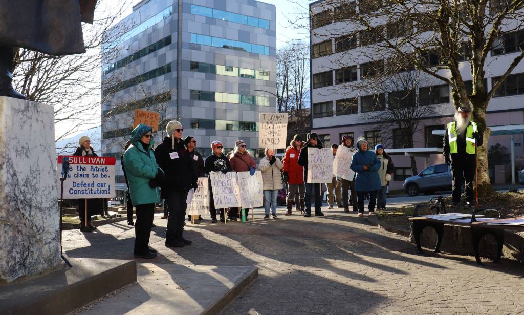 U.S. Sen. Dan Sullivan, R-Alaska, delivered an annual address to the Alaskan Legislature at 11 a.m. on Feb 18. More than 30 protesters gathered outside the capitol and in the hallway before the chamber.