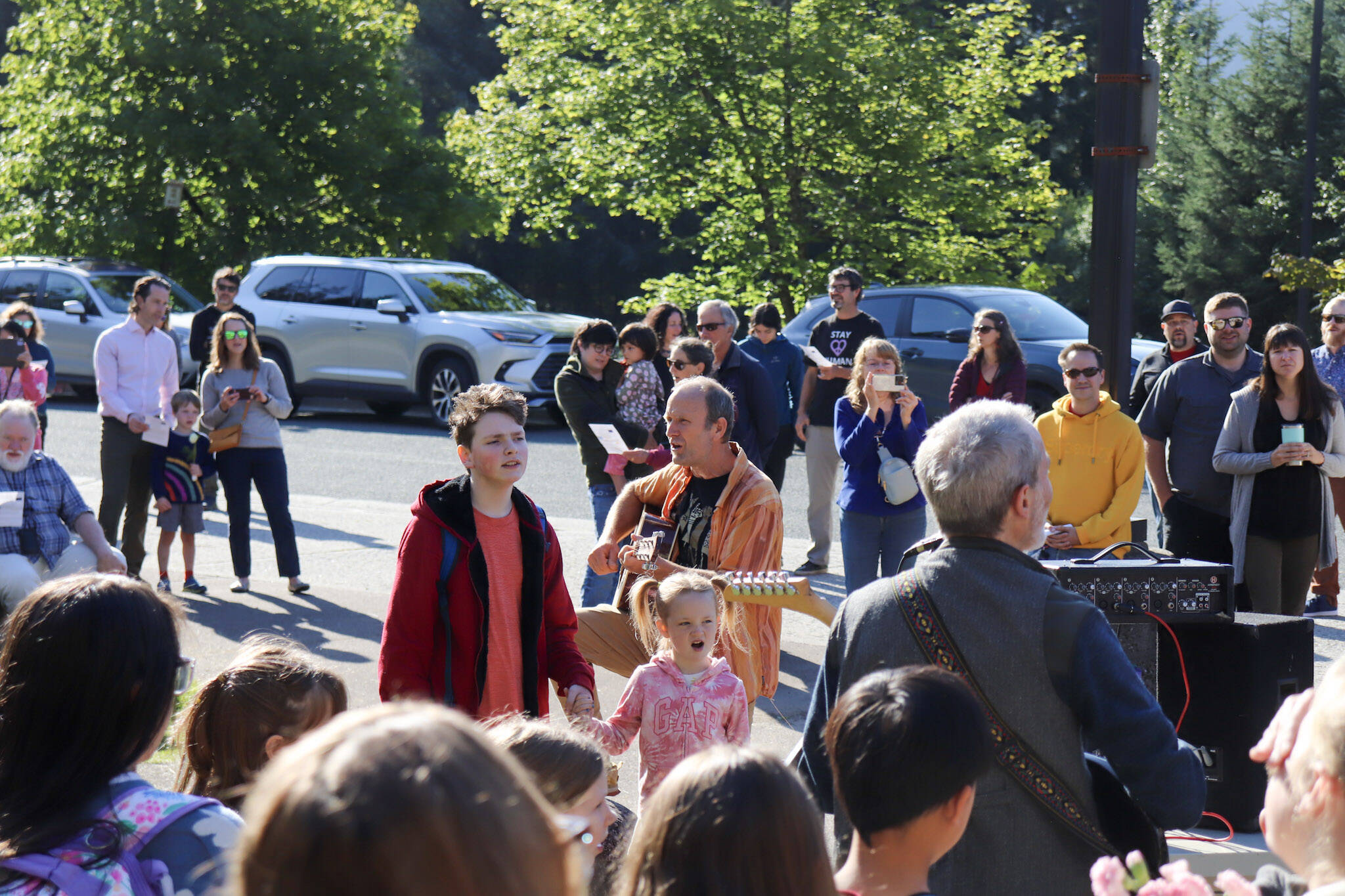 The school year at the building that formerly was Dzantik’i Heeni Middle School began shortly after the transition of its programs’ previous locations, and the “Wisdom Day” ceremony ended with the oldest and youngest student leading the way into their new campus of Dzantik’i Heeni. Those students were Chase Van Linden and Eliana Porter. Porter ran up to take Van Linden’s hand in song after Trostel called out for a brave kindergartner.
