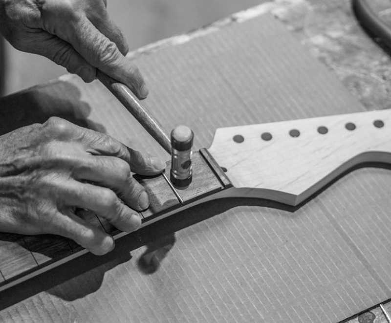 Gress: Making guitars involves a wide-ranging set of skills, which makes quantifying the art difficult. Making a neck from a maple plank into the playable heart of the instrument takes most of three days work time. Work time tends to be three to four hours a day. Making a body is a more extended process, partly because of drying and curing time for glues, stains, and finishes — and hours and hours of sanding.