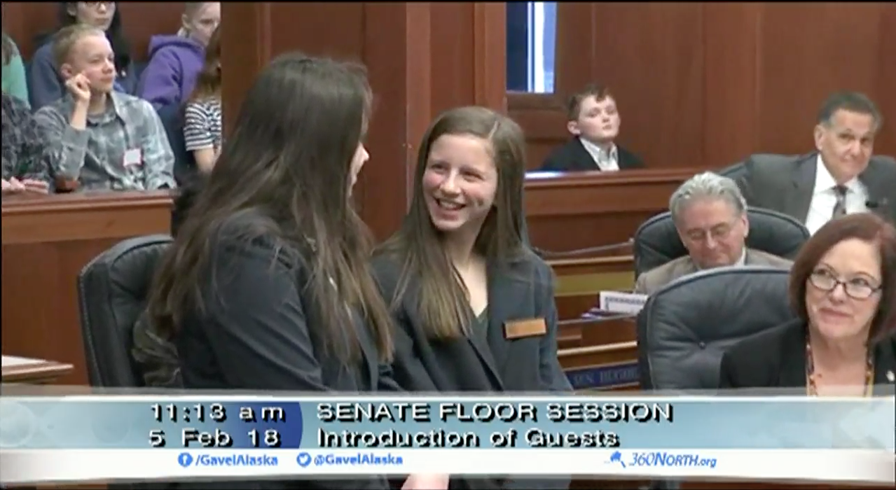 “I’ve lived in Juneau all my life and I’m an eighth grader at FDMS. Just last week we went to the Capitol building and learned about all the amazing things the government does on a daily basis. We learned about the branches of government, we watched a judge go over someone’s case, and learned that at any age you can become a page (it’s like passing notes in class but you’re supposed to do it). I’d like to thank the League of Women Voters and the Alaska Committee for actually giving us the opportunity to go to the state capitol. It wouldn’t be possible to go without the great people who actually arranged and guided us through the building, I know for a fact everyone who went enjoyed the trip immensely, and I hope that kids next year will have the same chance as I did to go.”
