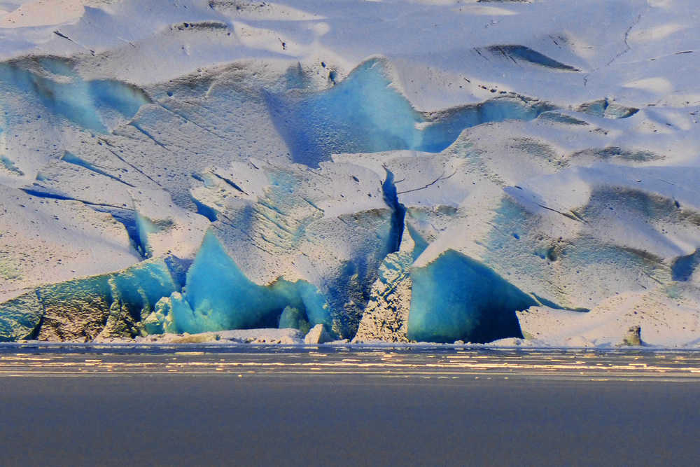 The bright blue of new calving at the Mendenhall Glacier on Dec. 5.
