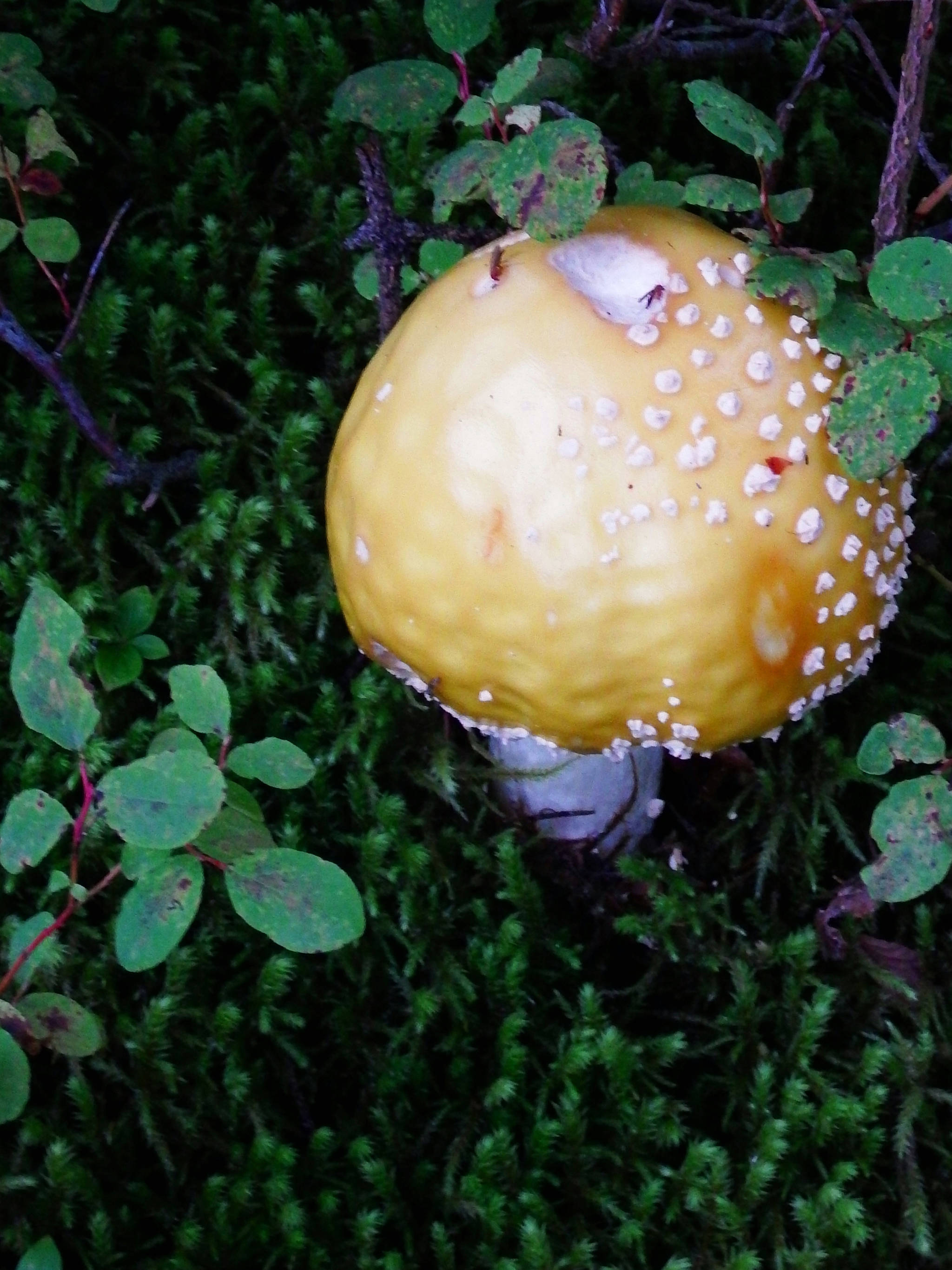 Yellow amantia mushroom, the “fly agaric” mushroom. Note the small flies. (Photo by Linda Shaw)