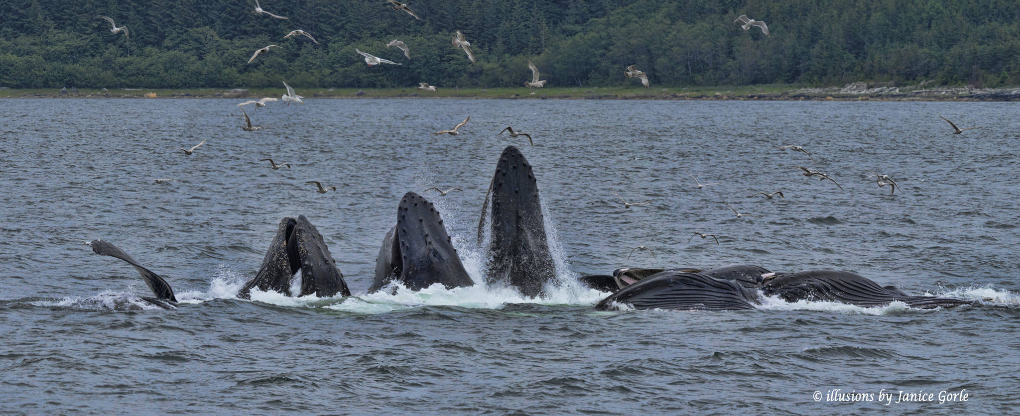 Humpbacks bubble net feeding on June 10. (Photo by Janice Gorle)