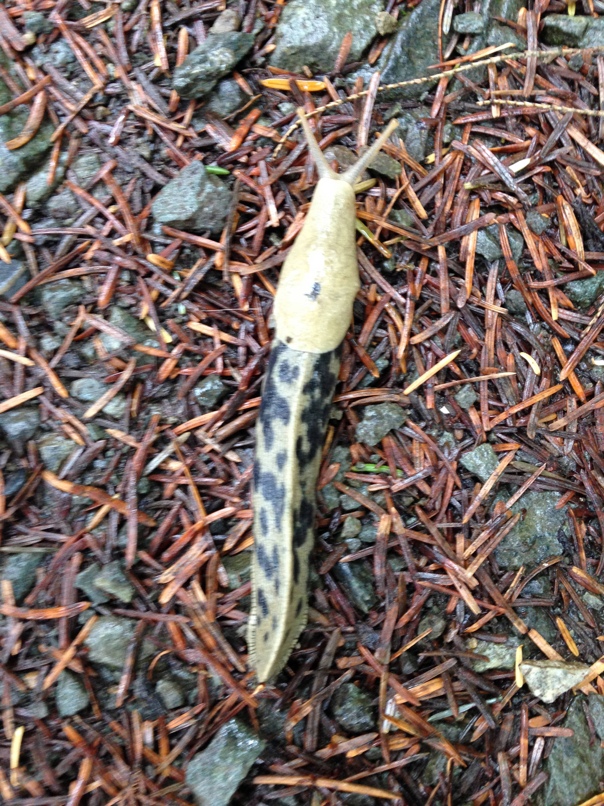Ariolimax columbianus or banana slug, a gastropod common in Southeast Alaska. This specimen was seen on Pt Louisa trail mid-summer. (Photo by Anthony Pope)