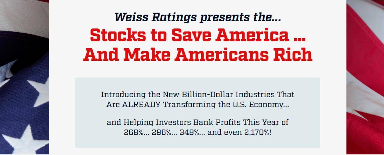 Weiss Ratings has launched a new sales page featuring stocks that will save America.